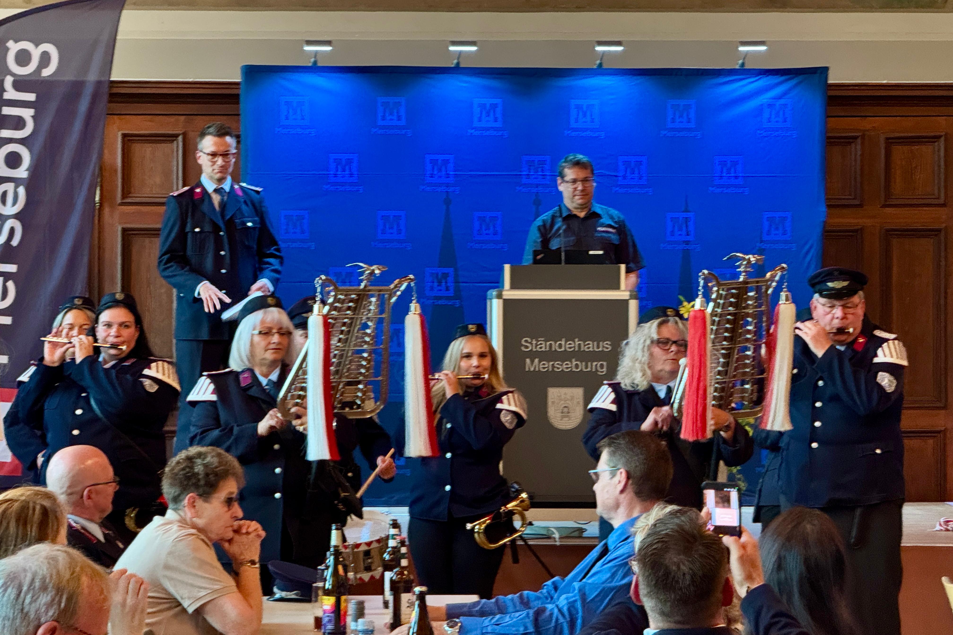 Zur Begrüßung der Gäste spielte der Spielmannszug der FF Bad Lauchstädt mit begeisternder Feuerwehrmusik auf.