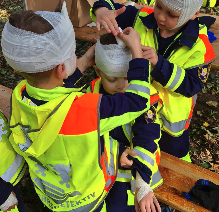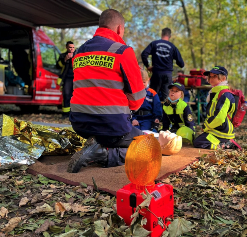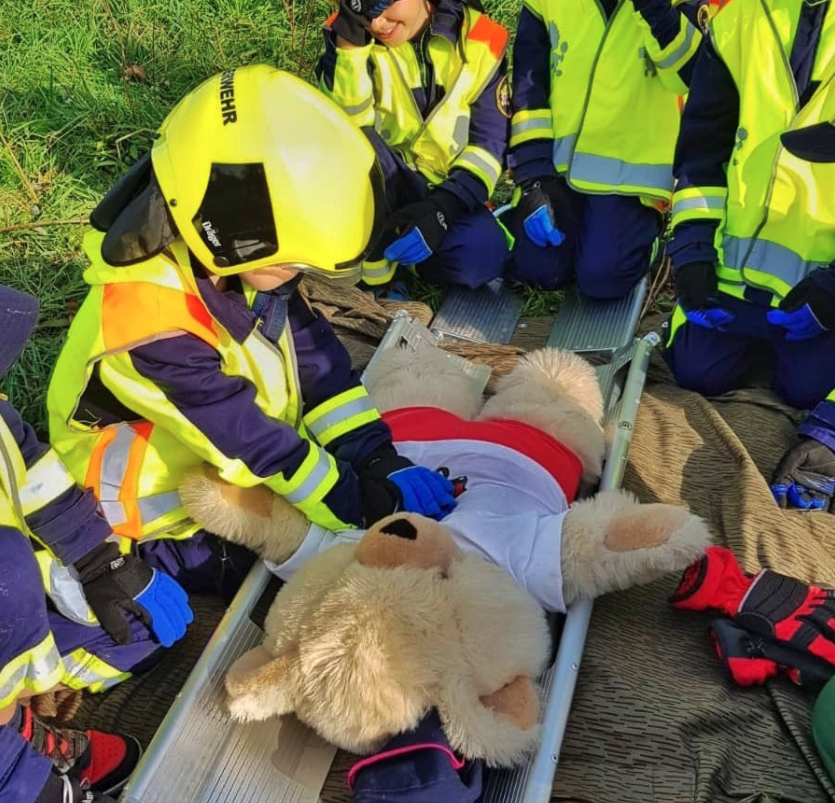 Bei bestem Wetter ging es einen ausgewählten Naturpfad entlang, der insgesamt fünf verschiedene Stationen mit unterschiedlichen Aufgaben bereit hielt. Angefangen mit einem Wissensquiz an Station 1, ging es weiter zur Station 2 "Teamspiel" bei der aus Feuerwehrgeräten eine Figur gebaut werden musste, wobei Fingerfertigkeit gefragt war, was den Kindern sehr viel Spaß machte. An Station 3 empfing die Kinder das Projekt "Weltoffener Saalekreis", bei der Wünsche und Projekte von Kindern Gehör fanden. Die Rettung und der Transport eines verletzten Teddys über einen Hindernis-Parcour standen bei Station 4 auf dem Programm und zu guter letzt wurde an Station 5 kindgerecht das Thema "1. Hilfe" vermittelt. Es war ein langer aber erfolgreicher Tag bei dem wieder das Miteinander und die Teamfähigkeit der Kinder und Jugendlichen im Vordergrund stand. Über den Tag verteilt gab es kleine Stärkungen und ein gutes Mittagessen. Möglich war dies alles unter anderem durch finanzielle Förderung von "Der Saalekreis" und dem Projekt "Netzwerk Weltoffener Saalekreis", welcher ebenfalls mit einer Station vor Ort war. Ein großes Dankeschön gilt auch dem Edeka Himmelreich Bad Dürrenberg, der uns wieder gut unterstützt und für die Kinder alle Getränke gesponsert hat.